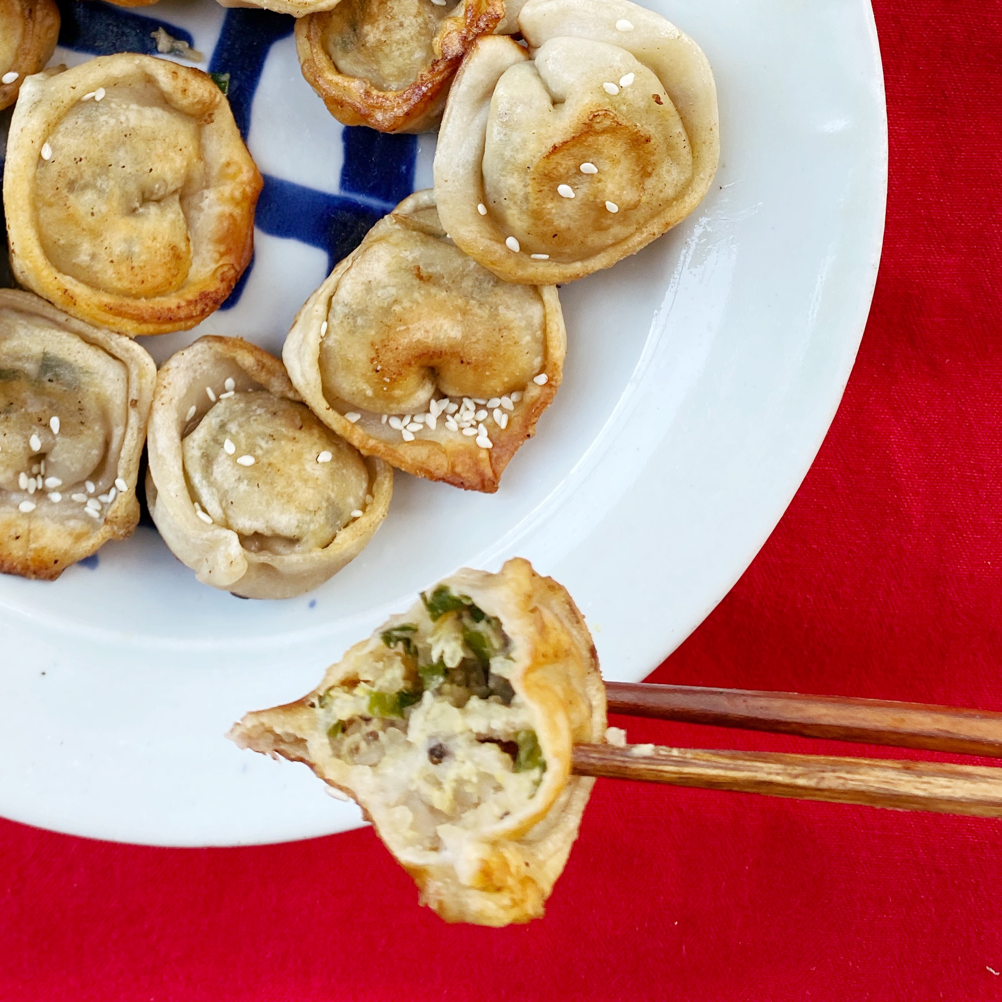 “There are so many varieties of mandu. Replace the tofu with ground pork or shrimp! Put some kimchi in it! Mandu from scratch do take time, but the result is really worth it. I always double or triple the recipe so I can freeze the extra. Find yourself stuck with leftover dough? Make sujebi – Korean hand-torn noodle soup! Just tear off pieces of the dough into a soup, and in 1-2 minutes you have noodles. Need another soup idea for the winter? Try mandu guk, a dish my father has down to a science. His recipe calls for a box of beef or chicken stock, a couple of garlic cloves, and a bit of fish sauce. He boils everything together in a pot and throws in frozen mandu—and if I’m lucky, some tteok. At the last moment, he streams in some beaten egg, and serves it with a bit of sesame oil roasted seaweed. It’s perfect.” Editor’s note: Use the same dough to make pork gyoza.